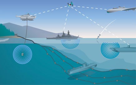 | Sonar rà quét thủy lôi mũi tàu ngầm. |